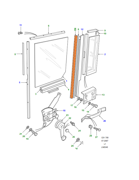 Guia cristal trasero Defender 110 - MXC5834